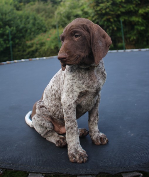 Sur 6 chiots Braques Allemands LOF queues longues nés le 17/03/2025, il reste 1 mâle à réserver pour une famille active.